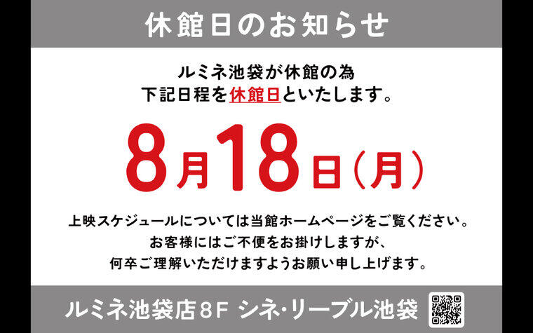 「シネ・リーブル池袋」閉館のお知らせ