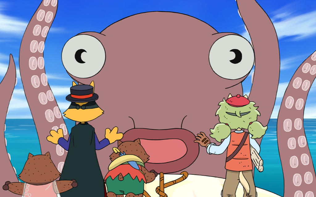 ゾロリとイシシ&ノシシは、大の仲良しのきょうりゅうママから「かぞくに新しいたまごがうまれました!ぜひ見に来てください!」という手紙をもらい、きょうりゅうが住む南の島“おっとっ島(とう)”を訪れた。